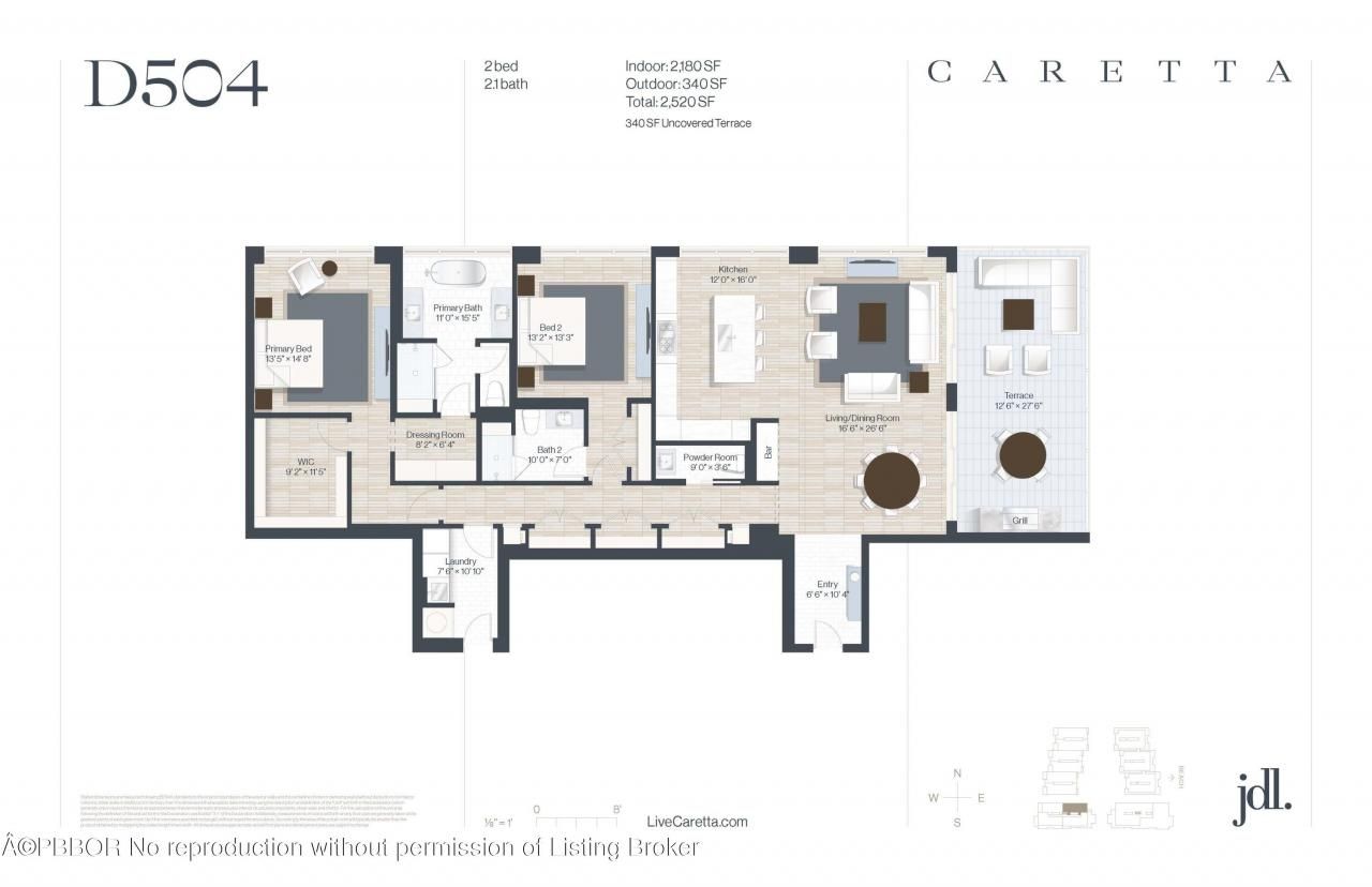 Juno Beach's newest seaside urban community, Caretta! Sales center now open. This corner unit offers all the modern luxuries including a chef's kitchen featuring wolf stove, sub-zero refrigeration and a spacious island with waterfall countertops, elegant features, and 10' ceilings. Enjoy Florida living with an outdoor terrace and outdoor kitchen with a built-in gas grill. Caretta is Juno's newest luxury development with amenities including rooftop pool, sauna, dog park, fitness center, golf simu...Juno Beach's newest seaside urban community, Caretta! Sales center now open. This corner unit offers all the modern luxuries including a chef's kitchen featuring wolf stove, sub-zero refrigeration and a spacious island with waterfall countertops, elegant features, and 10' ceilings. Enjoy Florida living with an outdoor terrace and outdoor kitchen with a built-in gas grill. Caretta is Juno's newest luxury development with amenities including rooftop pool, sauna, dog park, fitness center, golf simulator, and restaurant. Just 400 yards to the beach. Since 1993, JDL Development has earned a reputation for developing luxury developments that exceed expectations, resulting in some of Chicago's most significant developments like One Chicago and No.9 Walton.